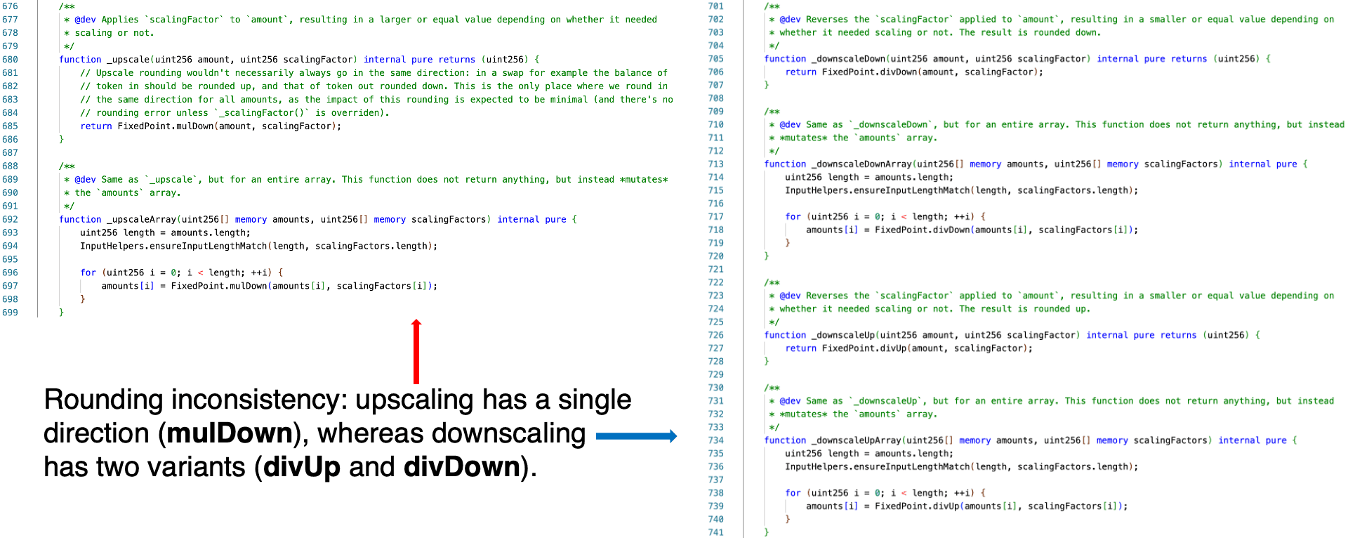 _upscale()(round-down only) and the downscaling operations (directional rounding) was sufficient to create an exploitable pricing distortion. - Arms Race in Security: The attacker split manipulation and profit extraction across separate transactions to evade detection. Detection systems should correlate related transactions, not just flag individual ones.