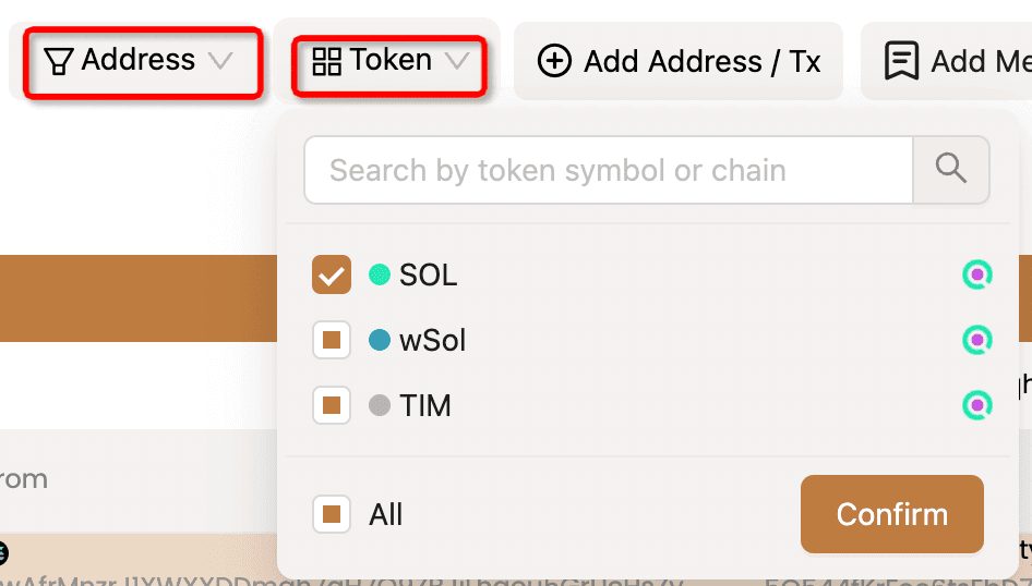 Wenn Benutzer Transaktionen analysieren möchten, die eine bestimmte Adresse und ein bestimmtes Token betreffen, können sie die erweiterten Filterfunktionen nutzen, um nur die Transaktionen anzuzeigen, die mit einer bestimmten Adresse und einem bestimmten Token verbunden sind.