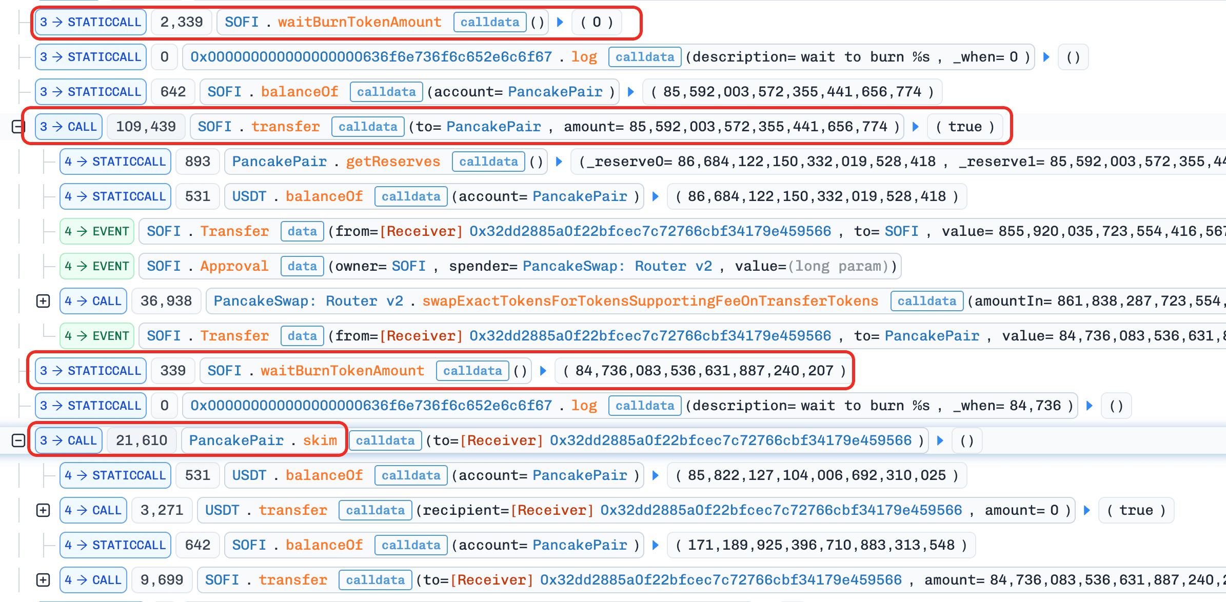 This incident was ultimately caused by an unsafe token-side burn mechanism that directly manipulated AMM pool balances. By embedding delayed burn logic inside _transfer() and executing burns from the liquidity pool itself, the SOFI token broke the fundamental assumptions of constant-product AMMs and enabled deterministic price manipulation.