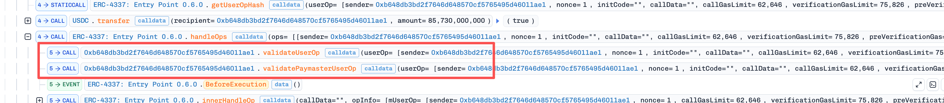 EntryPoint.handleOps(): because 0xb648 serves as both the sender and the paymaster, both account validation and paymaster validation remain under attacker control, allowing the attacker to profit 85,730USDC.