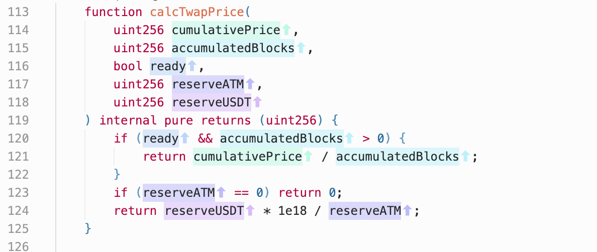ATM/USDTpool, inflating theATMspot price so thatgetTwapPrice()would permit a larger bet size in the next step. -