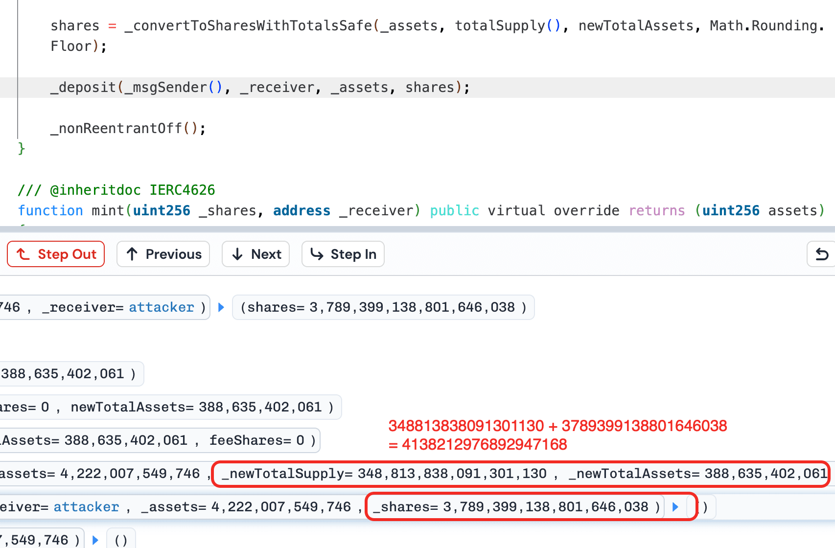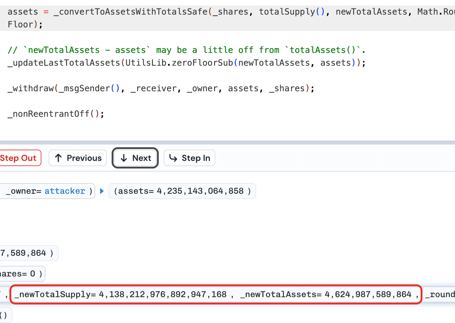The attacker then executed withdraw() and redeemed funds at the pre-promised fixed value, effectively transferring losses that should have been borne by the underlying LP position to the protocol itself, ultimately achieving zero-cost profit.