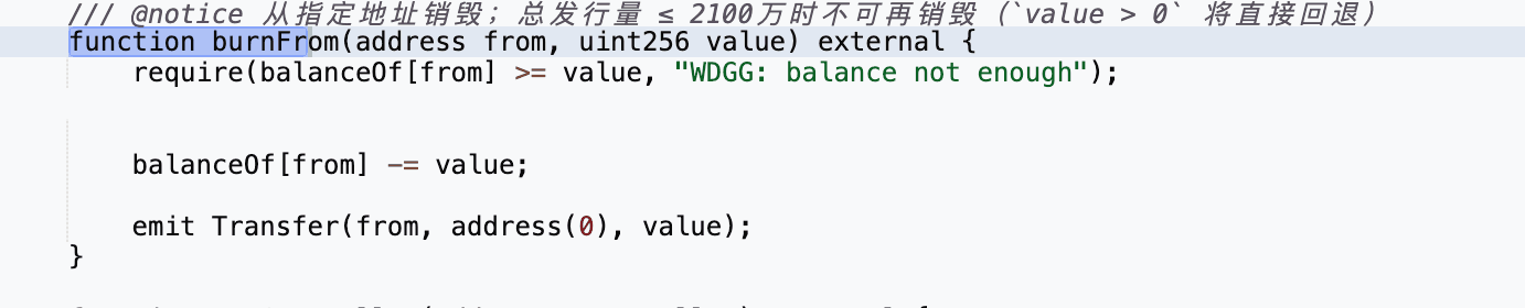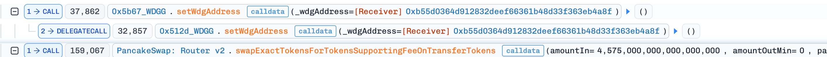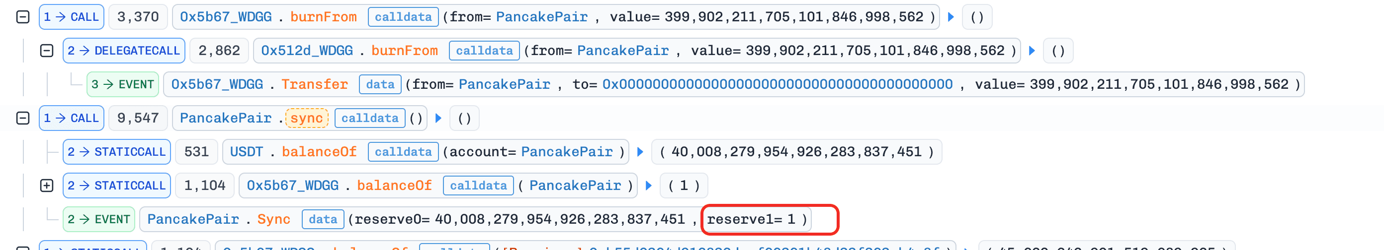 WDGG, the attacker invokedburnFrom()to burnWDGGtokens directly from the PancakeSwap pair address. -
