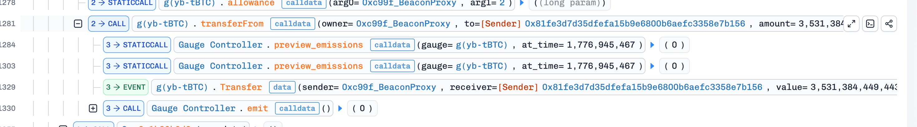 Step 3: The attacker redeemed the shares, which distributes the underlying reserves proportionally to share ownership. The attacker received a large fraction of every yield-bearing token the vault held.