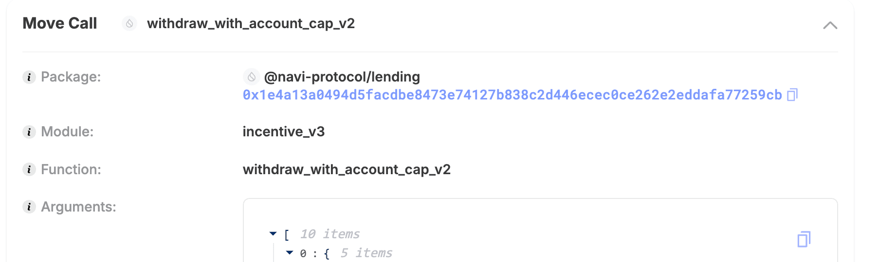 withdraw_with_account_cap_v2on@navi-protocol/lending::incentive_v3with the extractedAccountCap, pulling Volo's deposits off Navi.
