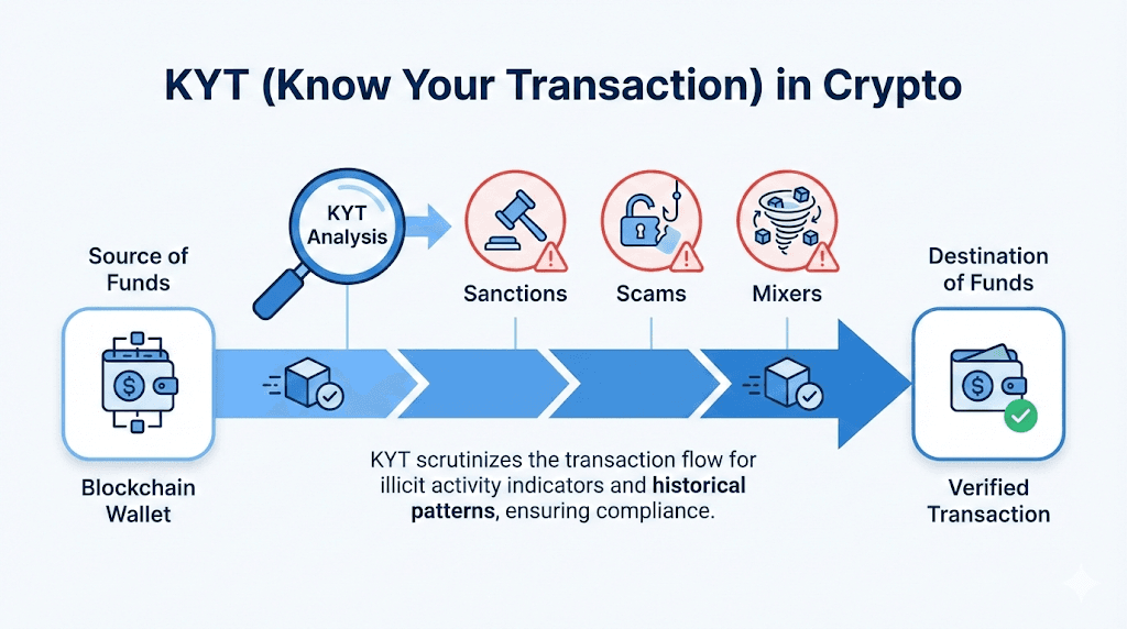 Krypto-KYT konzentriert sich mehr auf das Verhalten von Wallets, die On-Chain-Exposition und Transaktionsmuster als auf die persönliche Identität.