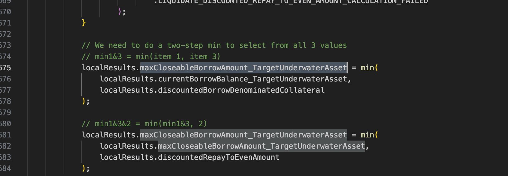 しかし、実際の実装では、この関数は代わりにグローバル変数closeFactorMantissaを使用して、返済が許可される債務額の上限を計算し、この値を返します。その結果、攻撃者は同じトランザクション内で自分のポジションを借りてすぐに清算することができます。