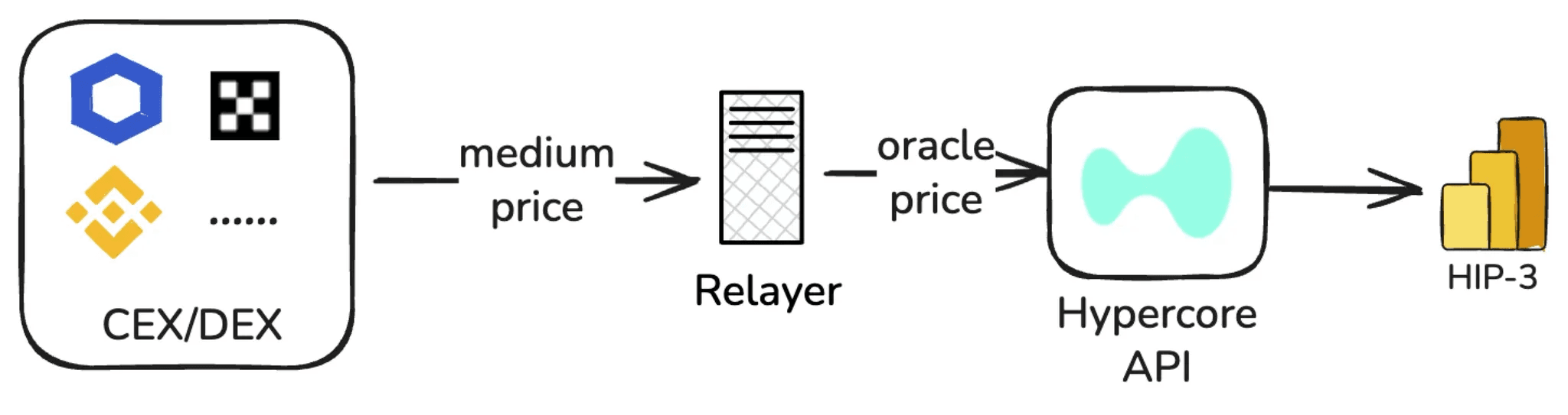 oraclePx由多个外部来源计算,markPx由中继器使用自定义算法计算,而externalPerpPx来自多个 CEX 的永续市场中间价的加权中位数。