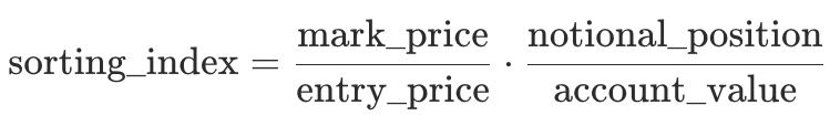 当隔离头寸价值变为负值时,将触发 ADL。系统按盈亏和杠杆对盈利的对手方进行排序,然后以先前标记价格(触发 ADL 前记录的先前标记价格)强制减少或关闭这些头寸。通过使用获胜方的利润来抵消赤字,协议保持偿付能力,不会产生坏账。