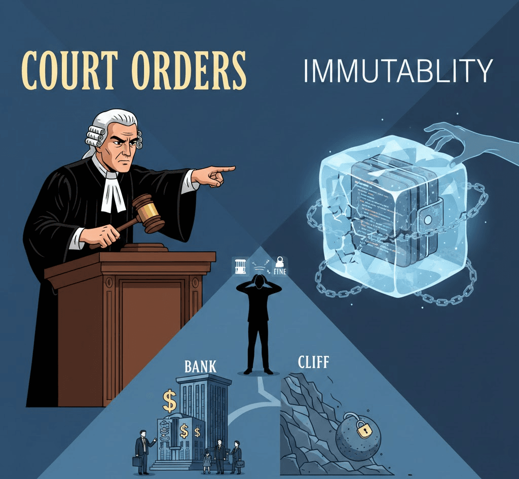 那么,合规性结论是什么?您陷入了进退两难的境地。 如果您保留管理员密钥以便遵守法院命令,您在法律上就是一家银行。这意味着您需要一支庞大的律师团队和昂贵的许可证才能维持运营。
