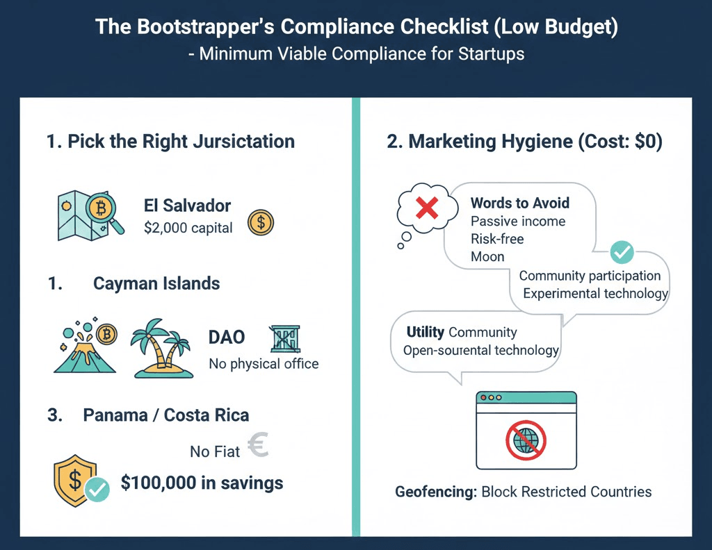 您的 MVC 的第一步是选择正确的管辖区。不要在有严格加密货币法律的国家(如美国或英国)的卧室里凭空发布,而不制定计划。如果您现金拮据,可以看看 2026 年的“创始人最爱”: